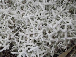 特征:为圆柱状颗粒,粒度在3~5mm之间,颗粒颜色有白色、红色、黑色、蓝色、黄色、橙、无色透明,还有少量白色碎末