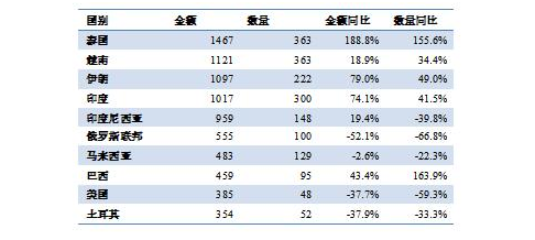 同比情况很好的解释了泰国成为当前中国挤出机出口大国的原因——无论是数量还是金额均有显著的增长。土地成本优势和优惠政策吸引了大量投资者在当地建厂,增加了当地市场对挤出机的需求。巴顿菲尔辛辛那提负责亚太区销售的集团副总裁冯骁曾表示,该公司佛山公司生产的设备在亚洲市场广受欢迎,其中包括泰国。