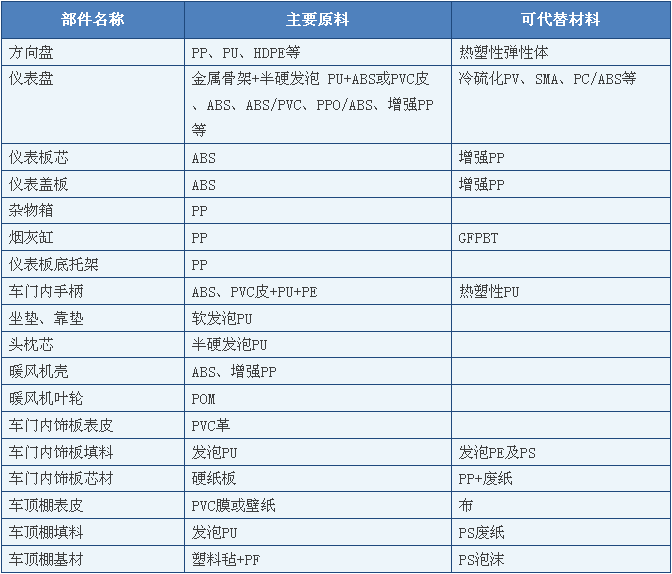 改性聚苯醚(MPPO)和ABS工程塑料及其合金材料主要应用于内外饰零部件,随着车型档次提高,工程塑料应用增加,ABS及其合金应用比例增加;